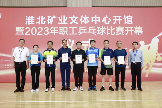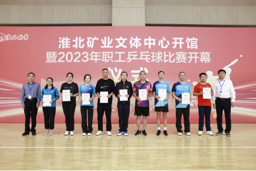 在中秋、國慶來臨之際,9月26至27日,淮北礦業集團在新落成的文體中心舉辦“喜迎國慶、‘乒’搏有你”2023年職工乒乓球比賽,經過兩天的激烈比拼,決出了男子團體、女子團體、男子單打、女子單打、優秀組織獎等各類獎項,集團工會第一副主席劉杰和工會、物業分公司相關負責人為獲獎單位和選手頒獎。