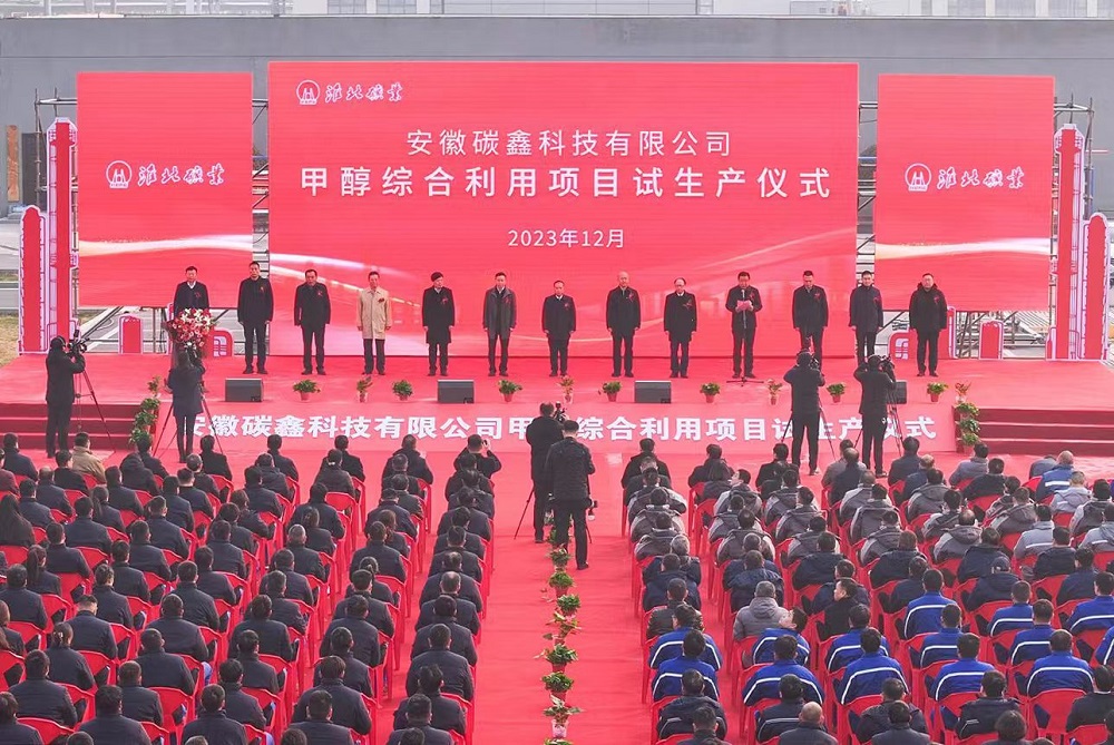 (2023年12月28日,碳鑫科技公司甲醇綜合利用項目試生產儀式舉行。)