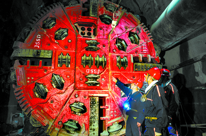 開展“產學研”一體化合作,不斷創新改進盾構設備,推進盾構機全系統“本土化”。“淮盾2號”較“淮盾1號”,提出了11項適應性改造方案;“淮盾3號”較“淮盾1、2號”,采用了7項國內首創技術;“淮盾4號、6號”首次實現了刀盤變徑,可同時滿足直徑5530毫米和4880毫米兩個斷面施工;“淮盾5號、7號”優化了液壓錨桿鉆機布置;“淮盾8號、9號”在前7臺盾構機機型基礎上,進行大坡度下山施工易糊刀盤、指型護盾較長造成空頂面積大等6項設備改進與升級。截至目前,淮北礦業集團已提出61項盾構機適應性改造方案,讓“大國重器”真正“入鄉隨俗”。