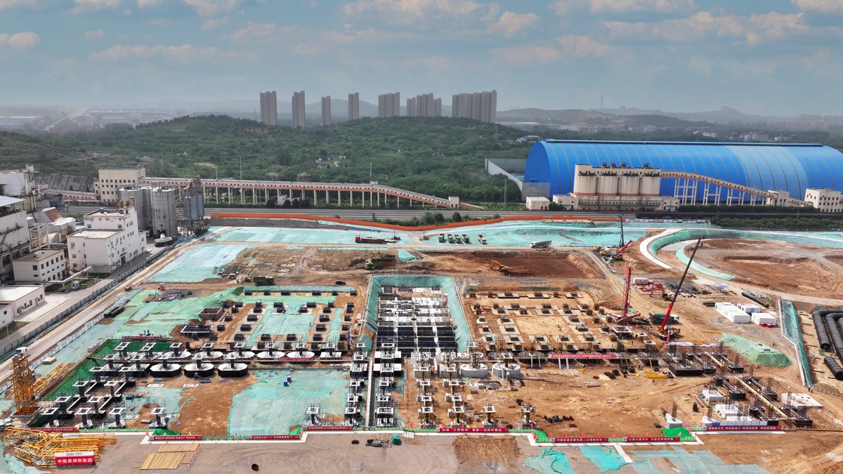 5月13日,航拍聚能發(fā)電公司2×660MW超超臨界機組項目主機廠房樁基施工現(xiàn)場