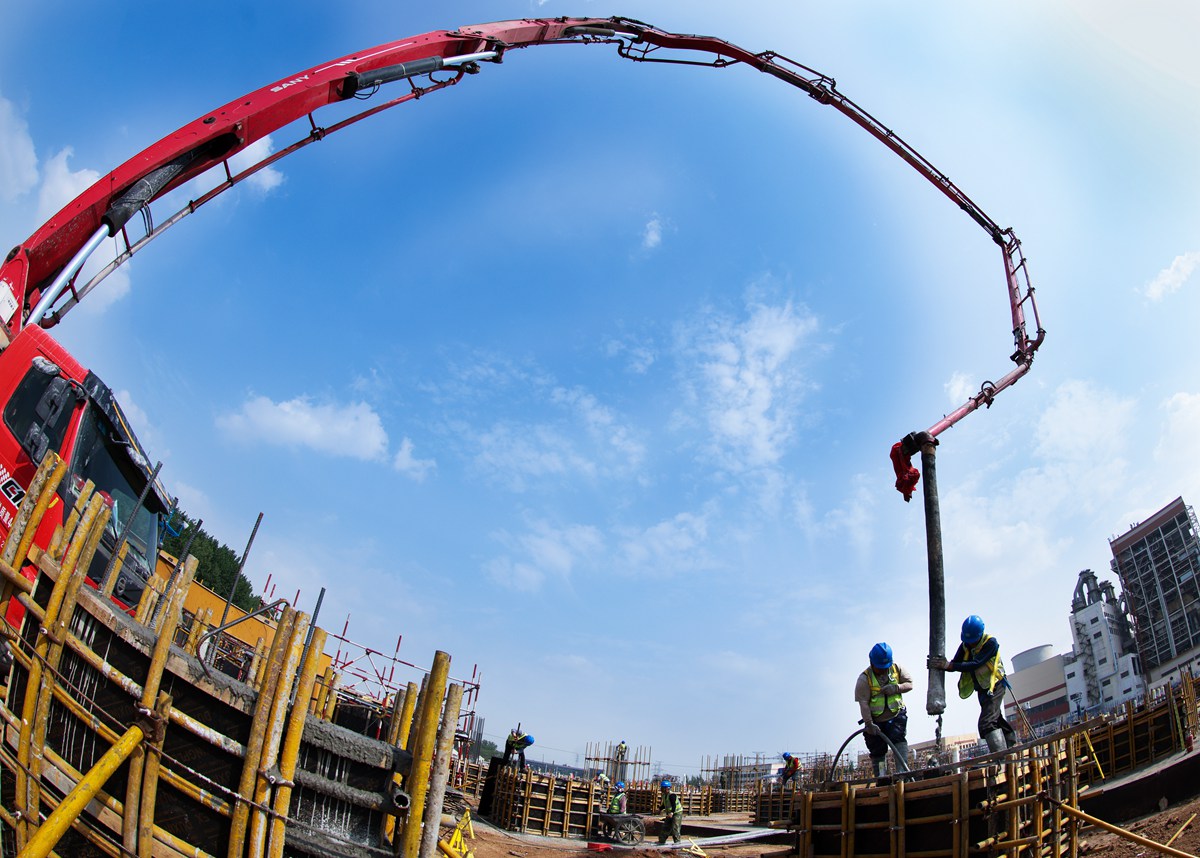 泵車正在澆注聚能發(fā)電公司機組項目鍋爐承臺短柱